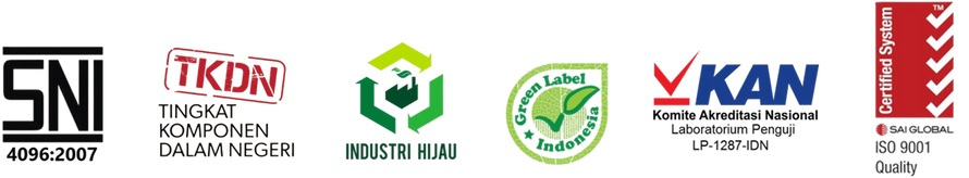 Memiliki sertifikasi SNI melalui pengujian dari Badan Standardisasi Nasional Indonesia untuk memastikan kualitas setiap Produk